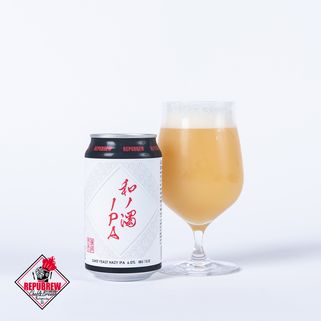 HAZY IPAと日本酒酵母が夢の共演! 日本酒酵母の濁り麦酒【和ノ濁IPA】推参! 現代では広く日本でも楽しまれるビール、しかし元来日本には奈良時代から作られた醸造酒である日本酒があります。 同じ醸造酒ですが米、麹、水を用いて並行複醗酵という独自の発酵により繊細かつ複雑で様々な味、香りを醸し出しています。 今回はChoryo Craft Beerが主催する和ノ麦酒祭のイベントで全国から10社のブルワリーが様々なアプローチで 日本酒酵母でビールを作るイベント。私達はHazy IPAのスタイルに決め仕込みを行いました。 濁り酒的な雰囲気を出しつつ、協会酵母901号によるカプロン酸エチル(リンゴや洋ナシ系)や 酢酸イソアミル(メロンやバナナ系)の生成によりイースト由来のフルーティさを出すようにしつつ、 ホップはHüll Melon, Idaho7, Ekuanot, Mosaicをドライホップ。 黄色がかった乳白色のボディに自然発泡のような泡感。 モルトを発酵させているのに日本酒に近いフルーティかつ、素材を感じるアロマが印象に残ります。 口に含むとマスクメロンのような優しい甘みのフレーバーが広がり 濁り酒のようにクリーミーなマウスフィールでスッと引く後味は日本酒感。他のスタイルでは味わえない特別な味わい。 HAZYとしての基盤であるため、苦みはなく、口当たりも柔らかく、是非日本酒好きな方々にもおすすめしたいスタイル。 デザインは和のテイストを強調し、三島柄という伝統的な柄を使用。地元のご加護も受けている演技の良い仕様。 会社角印風デザインのお墨付きで見た目も日本要素てんこ盛りです! ビールと日本酒が国境を超えて和となす、まるで人と人との縁みたいですね。 和洋折衷、伝統と現代技術の共演を是非体験してみてください!