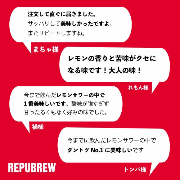 今回初めて注文しましたが、飲んでビックリ!レモン感が非常に強く、手軽に買えるレモンサワーとは一味も二味も違いました。リピ確です。