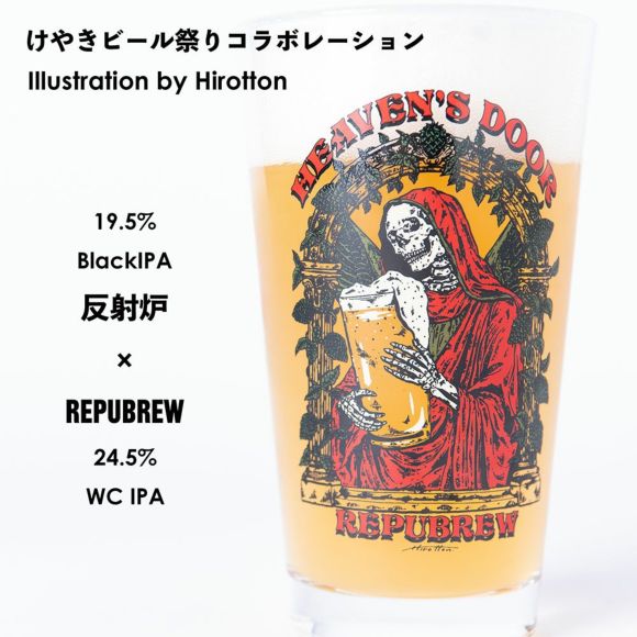 Hirottonさんが本作のために書き下ろしたイラストは、最高度数のクラフトビールが天国へ誘うようなイメージで、今回のコラボそのものを表しています。