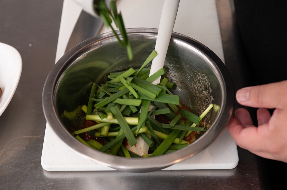 2.混ぜたら切っておいたネギとニラを合わせ、馴染ませるために少し寝かせておきます。
