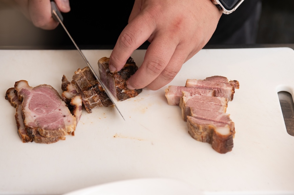 3.チャーシューを1cm幅程度の短冊に切り分ける。