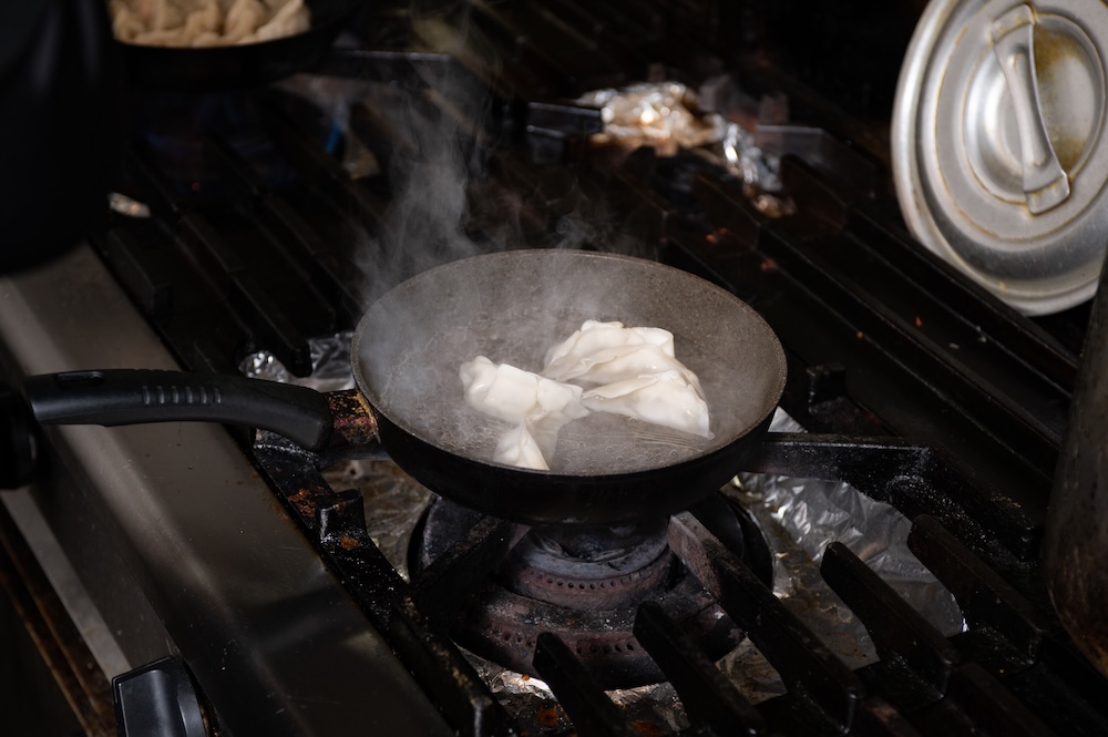 1.水餃子風にするので、規定の水量に70ml程度増やして餃子を茹でておきます。